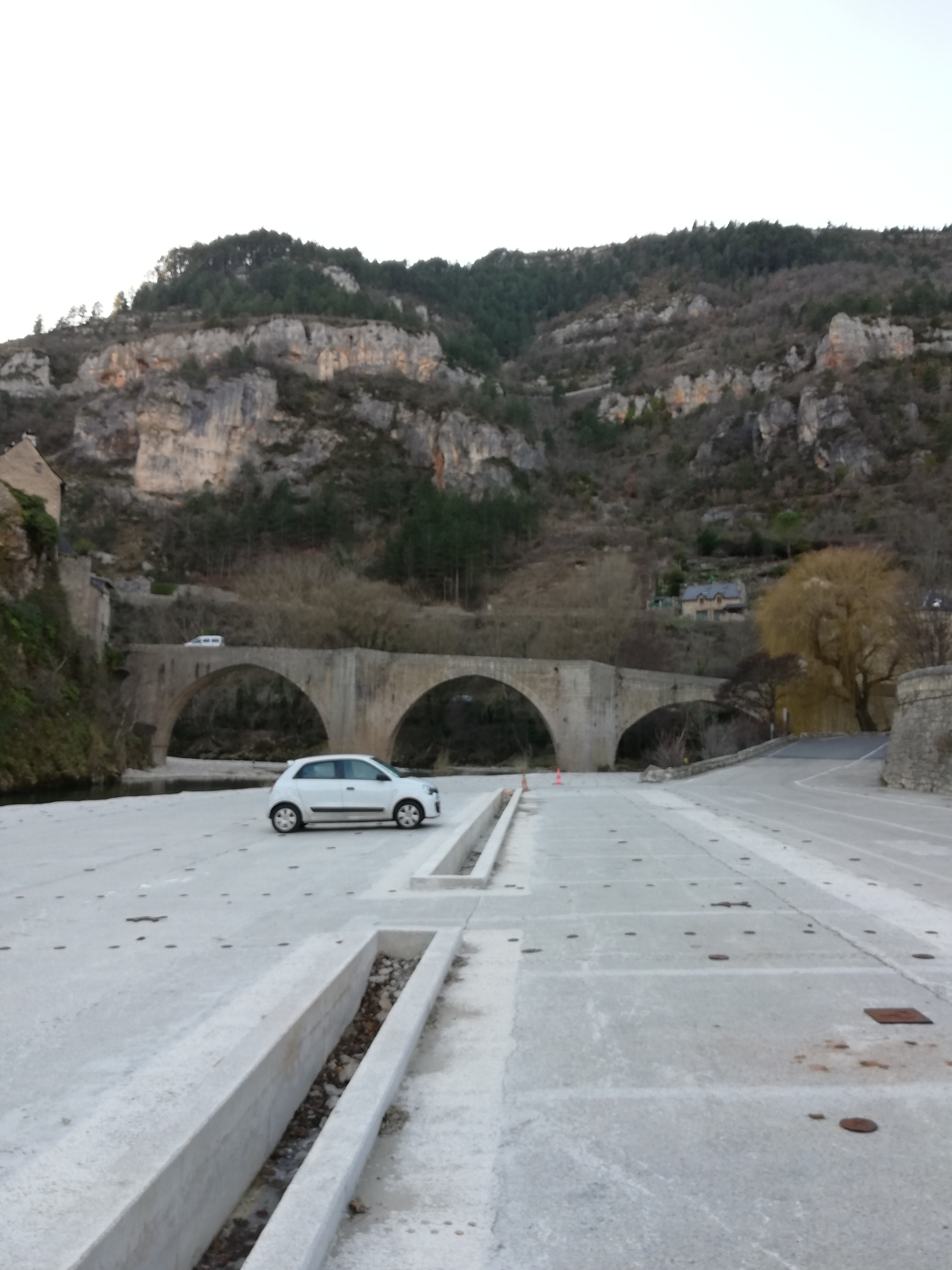 Parking au bord du Tarn facile d'accès hors saison à St enimie