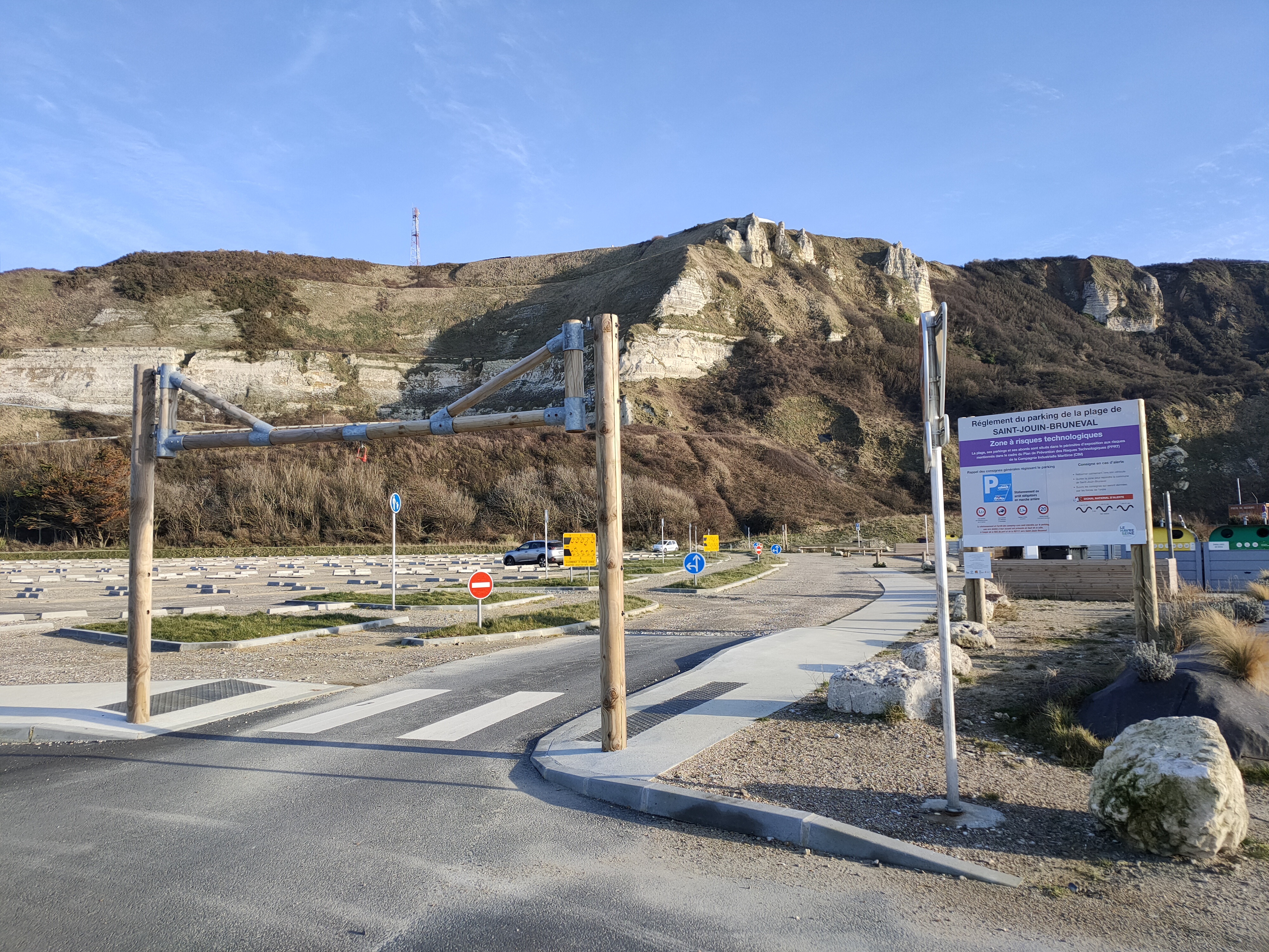 Très beau et grand parking où vous pourrez garer gratuitement votre camping-car. Il y a un snack-bar et des toilettes. En revanche, en ce qui concerne les toilettes, il faut reconnaître qu’elles ne sont pas vraiment inodores. Les falaises sont très intéressantes.